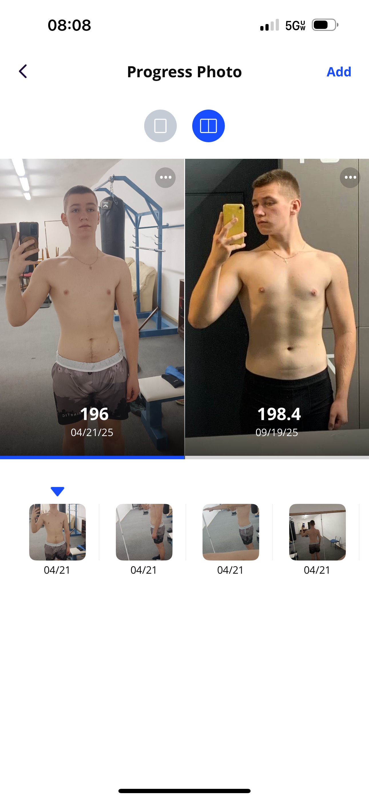170 → 185 lbs (muscle gain while cutting fat)